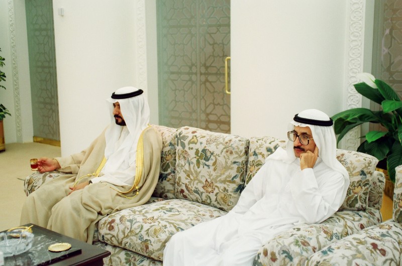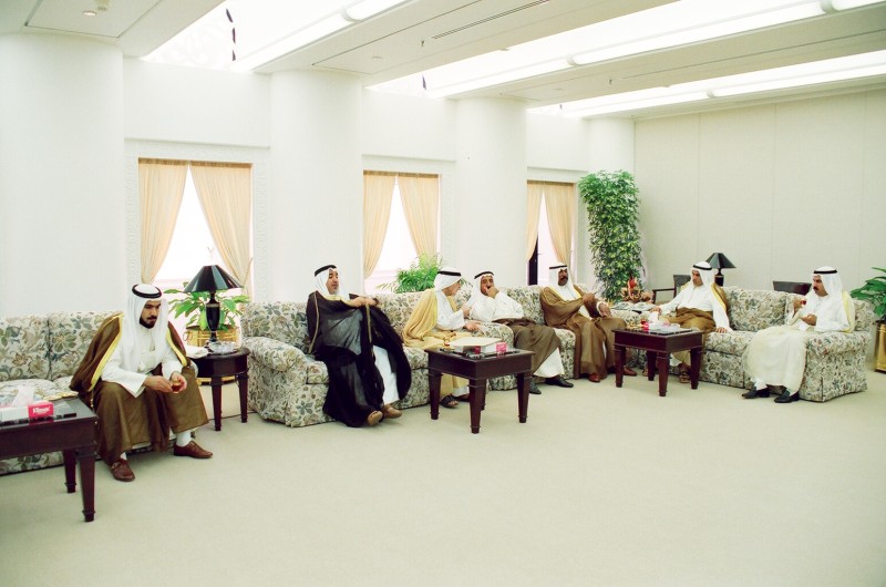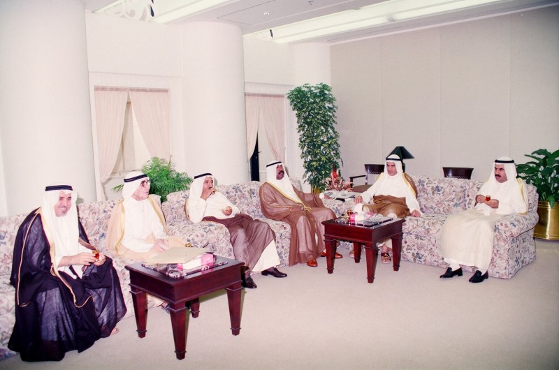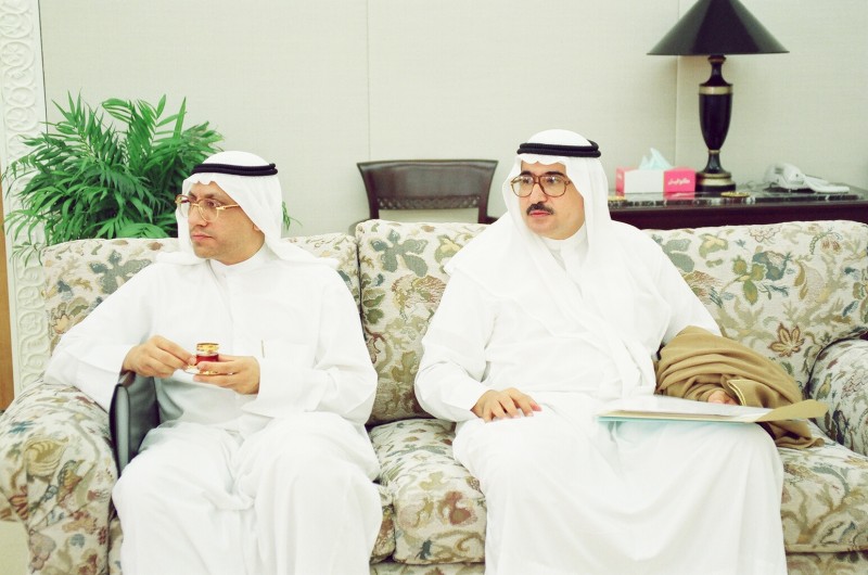 في استراحة المجلس ختام دور الانعقاد 1993 معية سمو ولي العهد رئيس مجلس الوزراء، نائب الرئيس صالح الفضالة، وزير الخارجية الشيخ صباح الأحمد، جاسم حمد الصقر