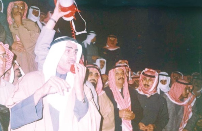من اليسار: د. أحمد الربعي، أحمد السعدون، د. عبدالمحسن الجار الله الخرافي، د. أحمد النفيسي - تجمع كيفان ١٥ يناير ١٩٩٠